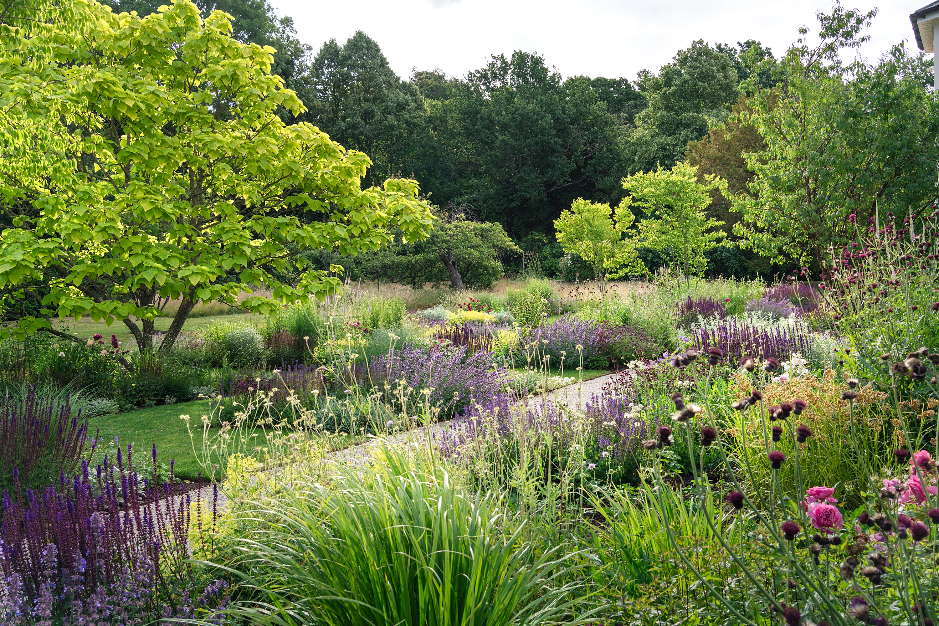 The garden’s transformation was guided first and foremost by planting. Rather than imposing extensive new hard landscaping, the design focused on revealing the site’s inherent beauty and creating a coherent strategy across its three acres. The goal was to reconnect spaces, restore rhythm, and cultivate a sense of place through planting that is immersive, generous, and emotionally resonant.