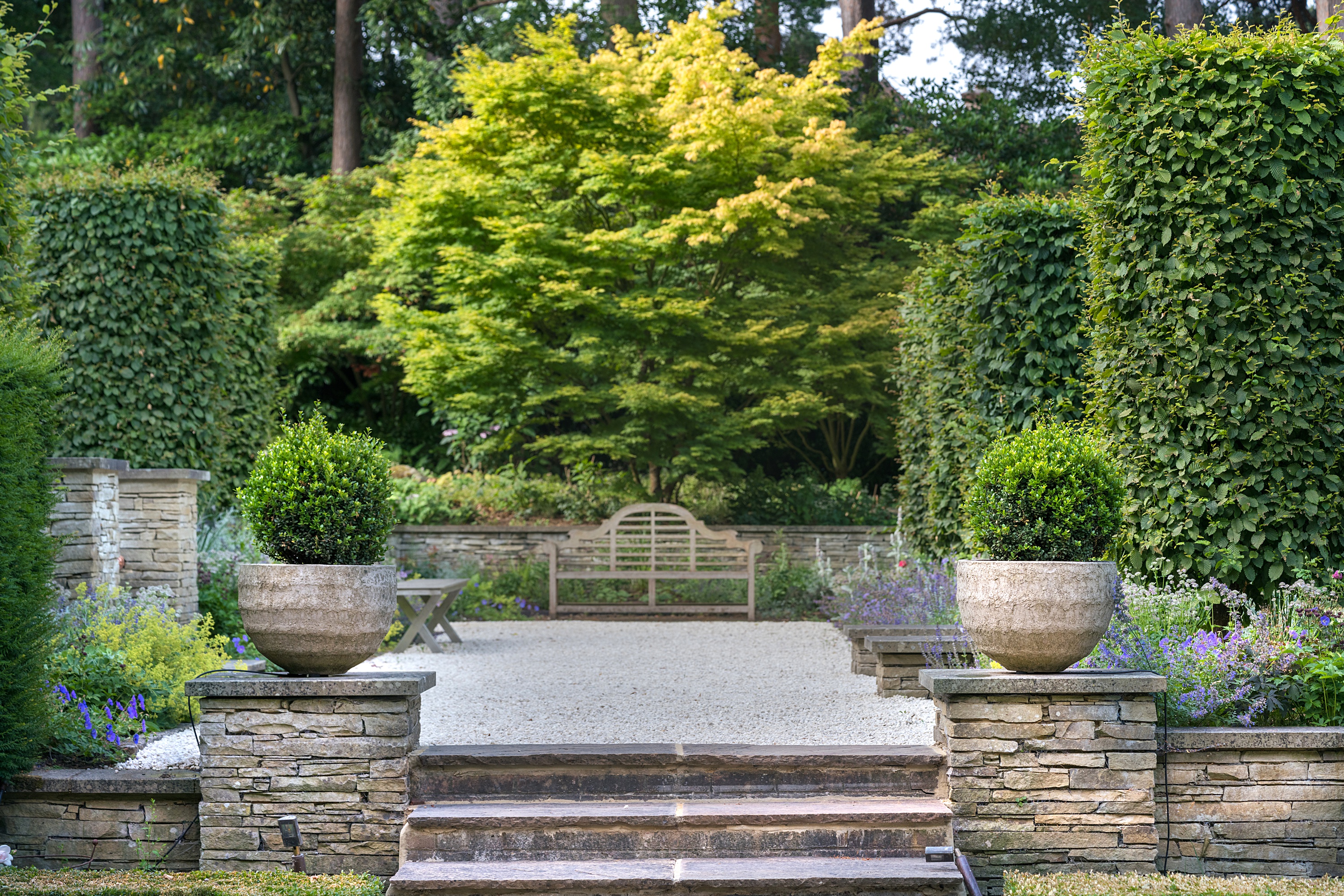 Located within an exclusive private estate, this Surrey property pairs architectural grandeur with expansive grounds structured around terraces, woodland, and generous open spaces. The commission focused on requalifying the existing landscape through a complete rethinking of the planting - redefining every area across the estate, from romantic, contemplative planting to large-scale woodland restoration.