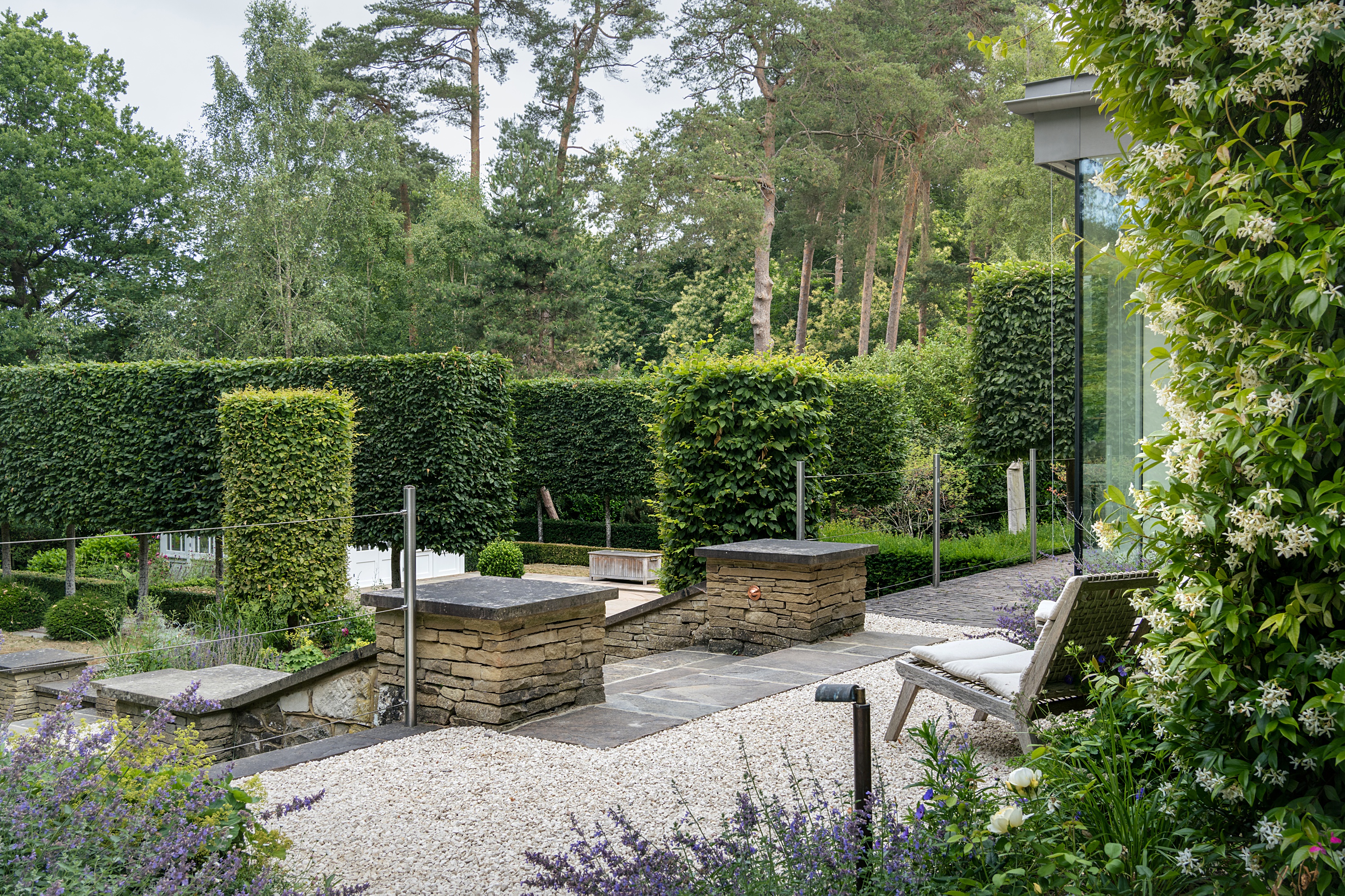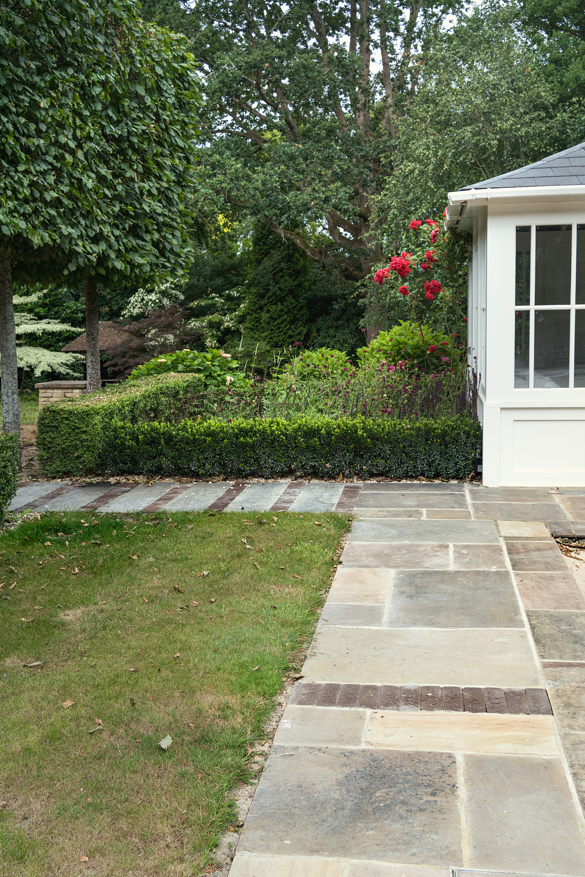 The driveway and entrance sequence were also requalified to restore a sense of arrival that matches the architecture’s stature. Movement through the garden now feels intentional, layered, and generous, with planting enriching every step of the journey.